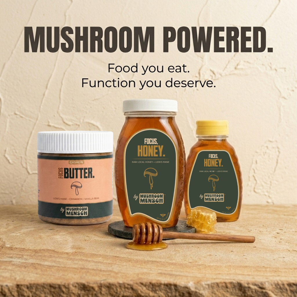 Mushroom Mensch (the brand) exists to facilitate your Mushroom Mensching – making the next right thing easier, including, most recently, through a premium honey that supports focus without asking you to change your routine.